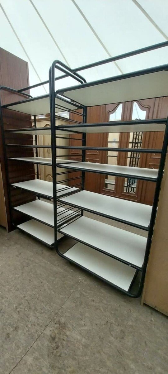 Hai bisogno di una soluzione pratica e versatile per organizzare il tuo spazio? Vendo un carrello con ruote dotato di 7 ripiani in alluminio nero, perfetto per soddisfare le tue esigenze di archiviazione e display.