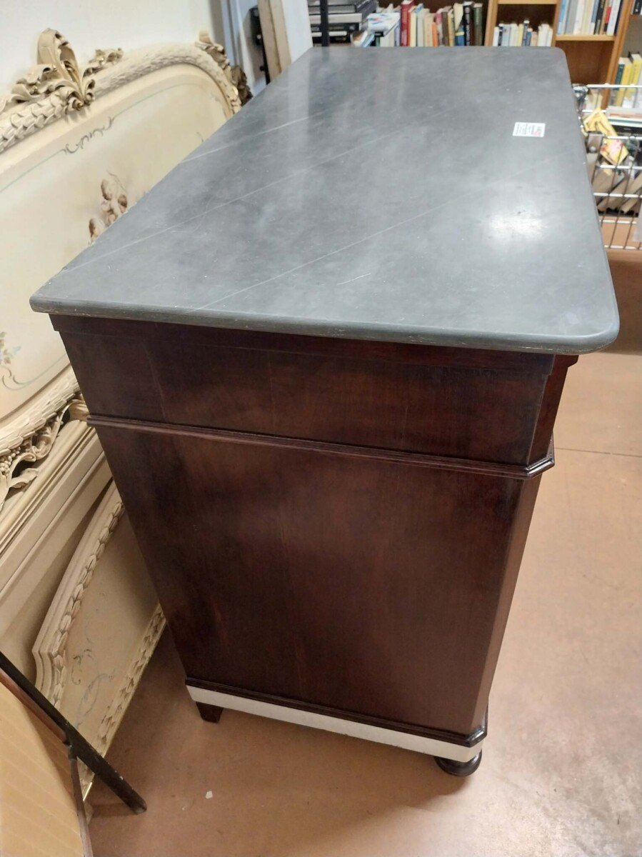 Il piano in marmo grigio aggiunge un tocco di lusso e raffinatezza al comò, creando un contrasto armonioso con il calore del legno naturale. Oltre ad essere esteticamente piacevole, il piano in marmo offre anche una superficie resistente e facile da pulire, ideale per esporre oggetti decorativi o utilizzarlo come base per specchi, lampade o altri oggetti d’arte.